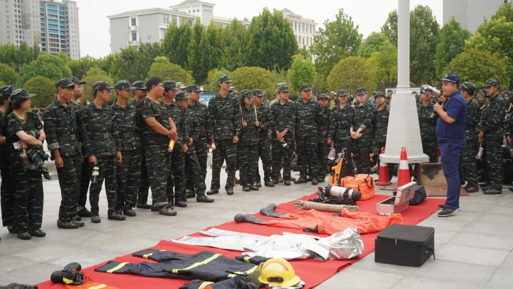 活动中,学生代表在消防官兵指导下学习了干粉灭火器的使用方法,并了解了消防救援装备和消防车双干线出两支水枪操的演练。
