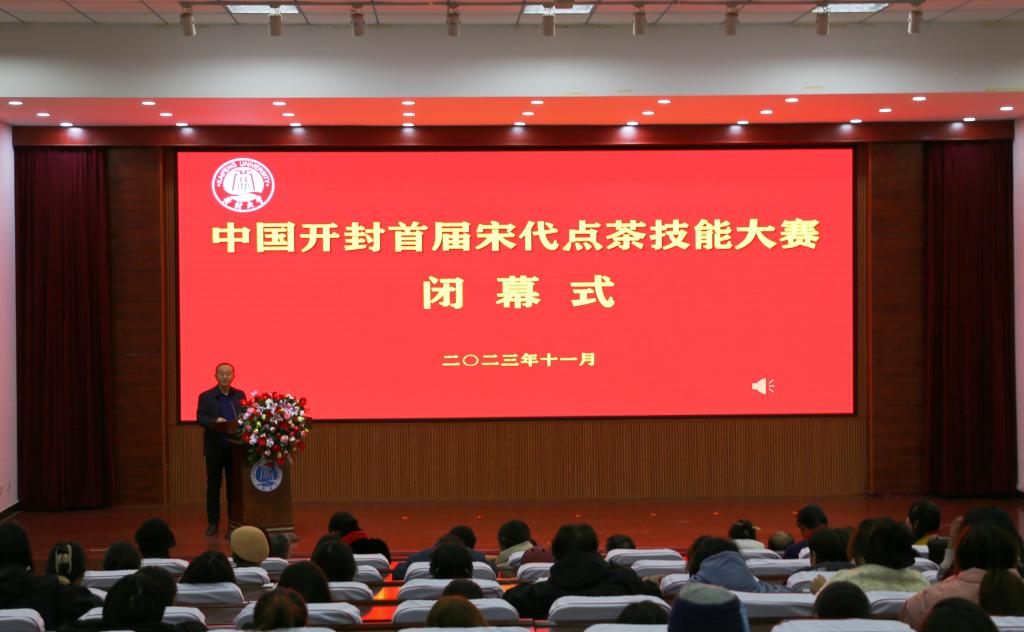 在闭幕式上,李治宣读了中国开封首届宋代点茶技能大赛获奖名单。于吉良、王树强、储建新为获奖选手代表颁发了奖杯、奖牌和荣誉证书。乔臻茜为裁判员代表颁发证书。