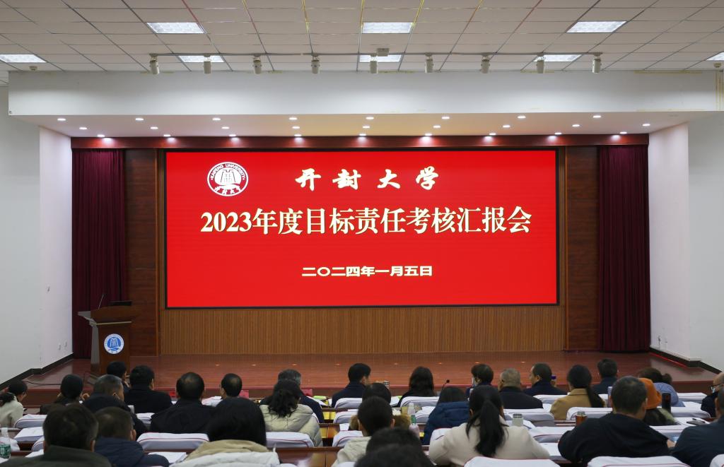本站讯 1月5日,我校在行政楼第一会议厅召开2023年度目标责任考核汇报会。校党委书记谭贞、校长王德如出席会议,校级领导班子、全体中层正职(部门负责人)参加了会议。会议由副校长万是明主持。