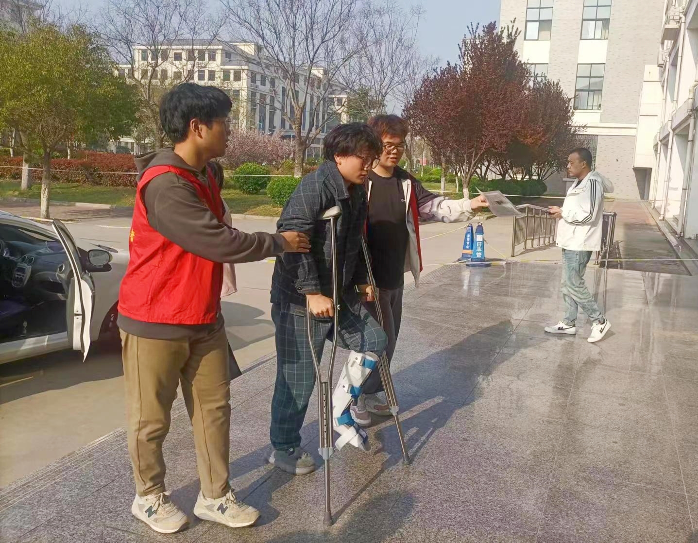 本站讯 4月1日,河南省2024年普通高校专升本考试拉开了帷幕,我校两位考生在考试前夕意外受伤,腿部骨折,学校安保人员、教师及学生志愿者暖心接力、爱心护送,在bat365在线官方网站考点内上演了暖心的一幕。