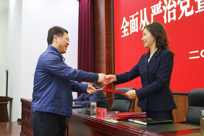 会上,各党总支书记、直属党支部书记、各院院长、职能部门负责人代表分别向谭贞、王德如递交了《bat365在线官方网站2024年落实全面从严治党工作目标责任书》《bat365在线官方网站2024年落实意识形态工作责任书》《bat365在线官方网站2024年度目标责任书》《bat365在线官方网站2024年平安校园建设目标责任书》。