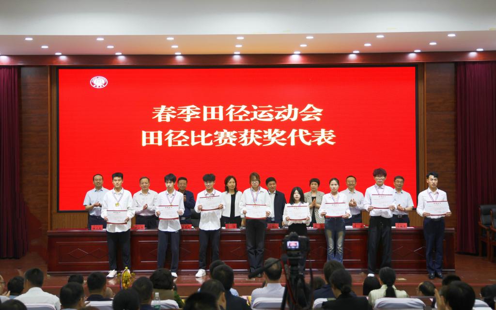 本站讯 5月10日下午,bat365在线官方网站2024年“两创两争”活动暨第二十届体育文化节表彰大会在我校行政楼第一报告厅举行。校党委书记谭贞出席会议并讲话,校长王德如主持会议。校领导班子成员、各党总支书记、直属党支部书记、卫校党委班子成员,获奖集体和获奖个人代表参加会议。