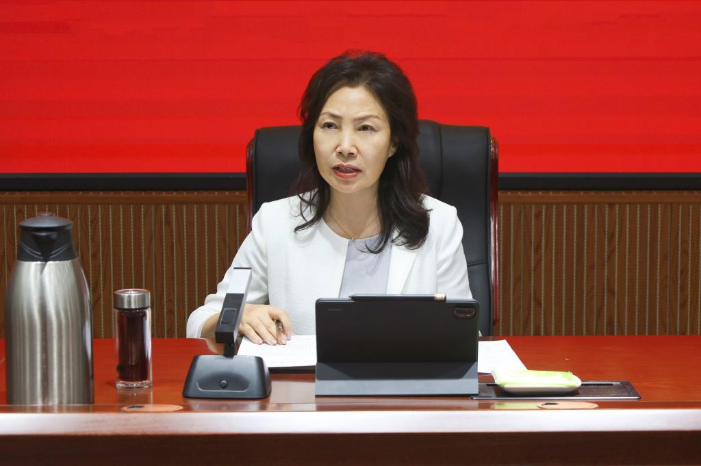 本站讯 5月16日下午,我校党委理论学习中心组(扩大)学习在行政楼第二会议厅举行,校党委理论学习中心组成员、各院部党总支书记、全体思政课教师参加学习。学习由校党委书记谭贞主持。