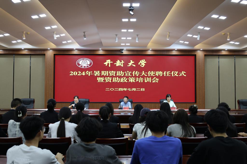 本站讯 7月2日,我校在行政楼第二会议厅召开2024年暑期资助宣传大使聘任仪式暨资助政策培训会。副校长万是明出席会议,学生工作部负责人,各院部资助管理员老师、学生资助宣传大使、学生代表参加会议。会议由学生工作部副部长杜瑞主持。