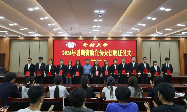万是明向受聘学生颁发聘书,并表示热烈祝贺。他强调,学生资助宣传大使是推广学生资助政策的关键力量,通过国家奖助学金及助学贷款获得者的引领与示范,以高效、精准的方式,推动资助政策在学生之间得到再宣传。他向暑期学生资助宣传大使提出三点殷切希望:一是不忘初心、展示形象,通过加强政策宣讲和发挥示范引领作用,推动资助政策深入人心;二是加强学习、精心准备,生动讲述资助故事和开大故事,扩大资助政策影响力;三要志存高远、脚踏实地。发挥自身作用,带动身边同学共同成长成才。