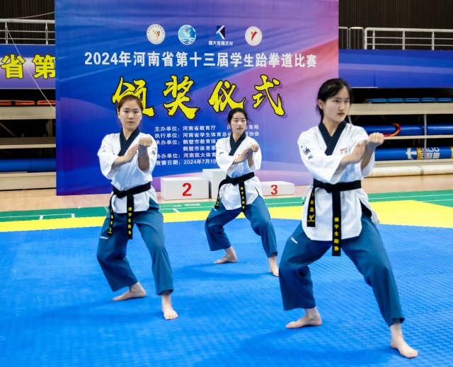 在多轮多项比赛中,我校17名队员不畏强手,顽强拼搏,经过激烈角逐,医学影像专业王涵雨获得女子个人品势冠军、女子团体品势冠军、混双品势冠军,现代物流管理专业杨春晓获得男子个人品势冠军、男子团体品势冠军、混双品势冠军,旅游管理专业梅嘉乐获得男子团体品势冠军、个人品势亚军,临床医学专业赵耀阳获得男子团体品势冠军,闻采编与制作专业鲁想获得女子团体品势冠军、女子个人品势季军,康复治疗技术专业贺涵蕊获得女子团体品势第一名,工程造价专业王艺蒙获得二段女子个人品势冠军、二段混双品势冠军,道路与桥梁工程专业王铠获得二段混双品势冠军、二段男子个人品势亚军,酒店管理与数字化经营专业杨环获得二段女子个人品势季军,计算机应用专业金鑫源获得三段男子个人品势冠军、三段混双品势冠军、男子腾空后旋踢击破亚军,计算机应用专业张新越获得三段混双品势冠军、三段女子个人品势亚军,新闻采编与制作专业孟兵悦获得三段女子个人品势冠军,连锁经营与管理专业张凤、艺术设计专业谢佳阳、动漫专业刘彤等3人同获级位组女子团体品势冠军,市场营销专业邓明珠获得级位组女子个人品势亚军。鉴于上述成绩,我校被授予“跆拳道示范校”荣誉称号,李丹丹、任鹏飞被评为“优秀指导教师”,杨春晓、王艺蒙、梅嘉乐等3名同学被评为“优秀运动员”。