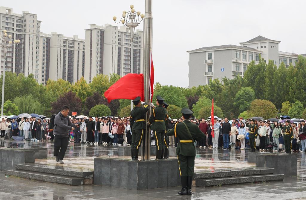伴随着国旗护卫队整齐划一、铿锵有力的步伐,升旗仪式正式开始。在庄严的国歌声中,鲜艳的五星红旗迎风冉冉升起。全体师生庄严肃立,精神饱满,面向国旗行注目礼,齐声高唱国歌,表达对伟大祖国的无限热爱和深情祝福。