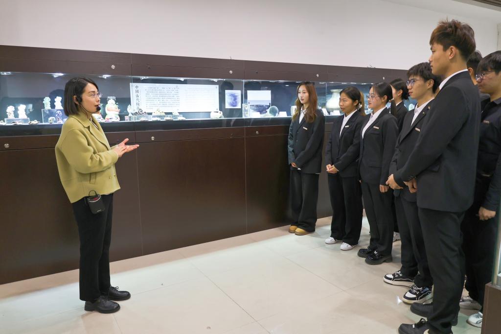 活动期间,大观博物馆成为了生动的思政课堂。馆长魏跃进深入阐释了博物馆的历史底蕴与珍贵馆藏。马克思主义学院副教授、思政课教师苏会君以“陶模中的“模”“范”思想”为题,为现场的记者与学生们讲授了一堂精彩的微思政课。她以博物馆中的宋代陶模为切入点,引导大家探寻模范理念在中华优秀传统文化中的历史渊源与精髓要义,并以学生身边的模范,即bat365在线官方网站优秀毕业生、全国五一劳动奖章获得者邓辉为例,对模范的重要意义进行了进一步解读。苏会君老师激励青年学子积极学习模范精神,追寻模范足迹,汲取模范力量,弘扬工匠精神,在新时代砥砺奋进,在社会主义现代化强国建设与中华民族伟大复兴的新征程中胸怀远大理想,坚守高尚品德,用青春之笔书写无愧于时代和历史的壮丽篇章。