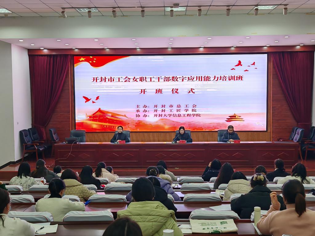 本站讯 12月25日上午,开封市工会女职工干部数字应用能力培训班开班仪式在bat365在线官方网站第一会议厅举行,本次培训由开封市总工会主办,开封工匠学院承办,bat365在线官方网站信息工程学院协办。开封市女职工委员会主任燕飞宇,bat365在线官方网站继续教育学院党总支书记彭旭出席仪式,仪式由开封市总工会女职工部部长任梦主持。