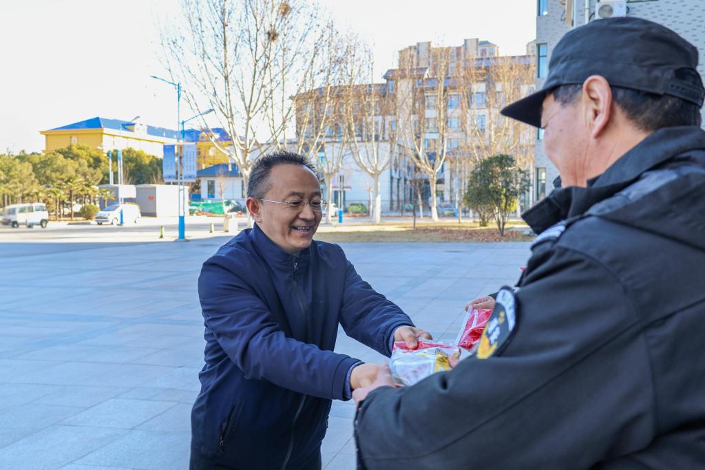 李治代表校党委、行政,向每一位坚守岗位的工作人员致以诚挚的新春祝福,祝愿大家阖家幸福、新春愉快。对他们在蛇年春节期间舍小家为大家的辛勤付出表达了深深的感谢,并为他们送去了年夜饭。他希望在岗员工能继续秉持认真负责的态度,以高度的责任感和使命感,扎实做好春节期间的后勤保障、安全保卫等各项工作,全力确保学校在节假日期间的安全稳定,让全校师生都能度过一个平安、欢乐、和谐的春节。