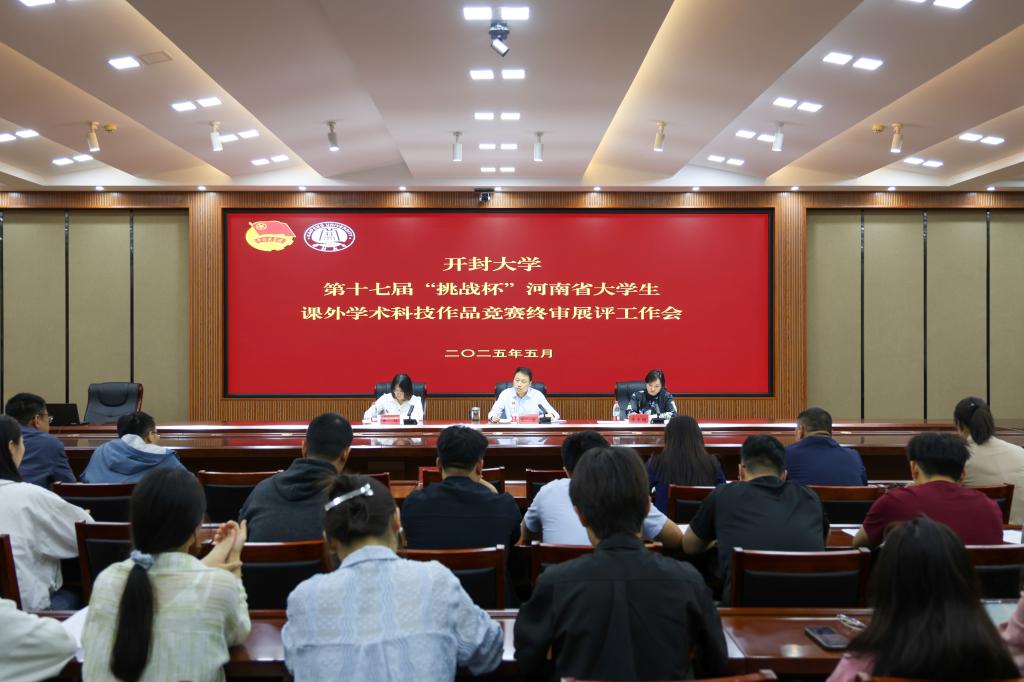 本站讯 5月8日下午,我校在行政楼第二会议厅召开“挑战杯”河南省大学生课外学术科技作品竞赛终审展评工作会。校党委副书记张合参加会议并讲话,会议由校团委书记李卓珊主持。