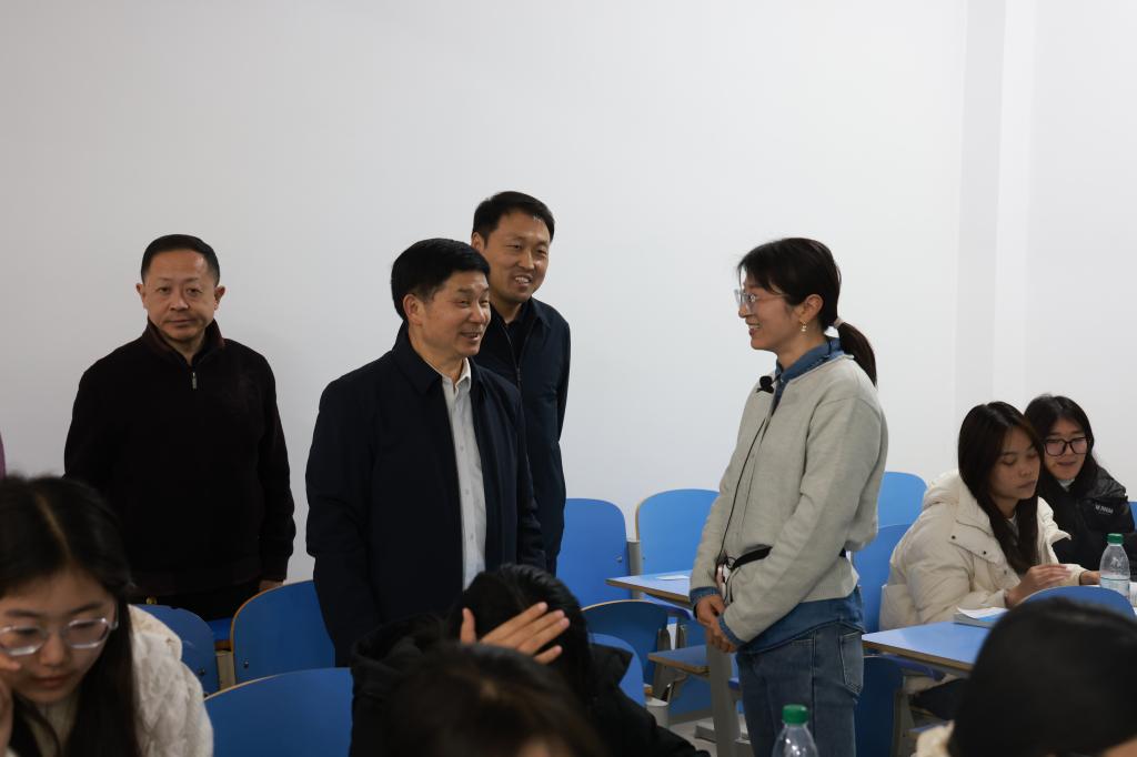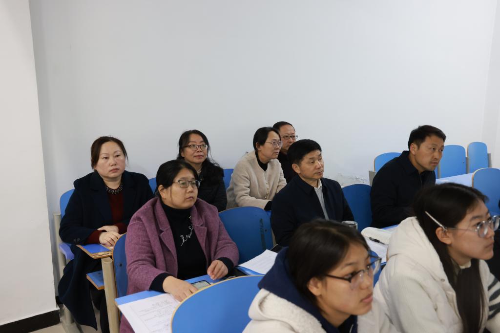 校党委副书记张合,党政办公室、党委宣传部、教务处、督导室、马克思主义学院等负责人一同听课。