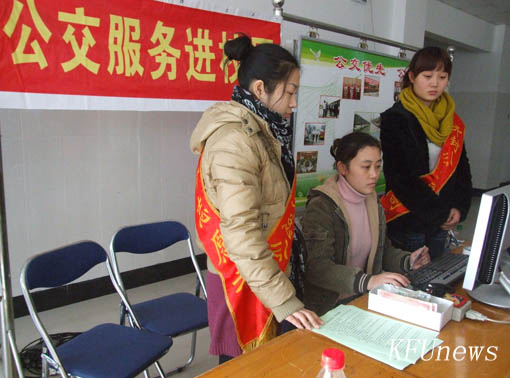 据了解,公交公司在我校开展的服务进校园活动为期一天。师生反映,公司服务上门,到校办卡,既优惠,又方便,再也不用为乘公交找零钱而犯愁。