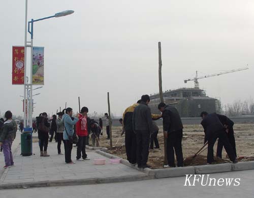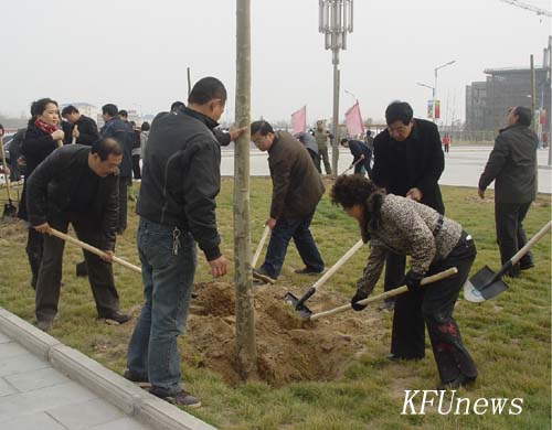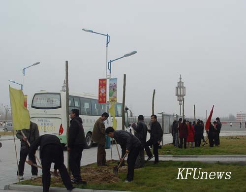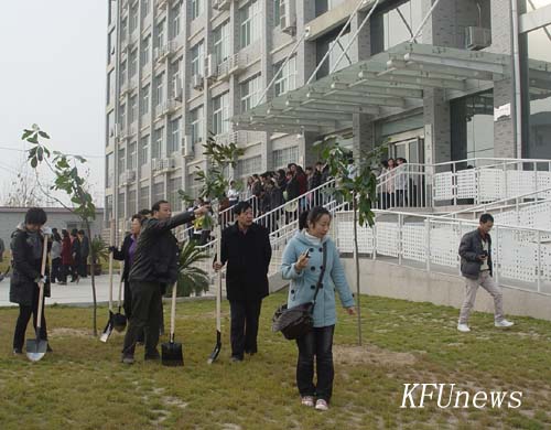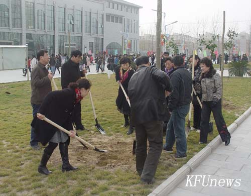 本站讯 11月18日下午,由我校党政办和新校区综管办组织的师生员工植树活动在东京大道校区火热开展,校领导莫华林、拜五四、储建新、赵辉、范金梅,以及学校各部门和财政经济学院、人文学院几百名师生参加了植树活动。大家用双手美化校园,相互协作,有的挖坑,有的填土,有的浇水,植树活动有条不紊,植树现场处处呈现出一派热火朝天的景象。通过本次植树活动,激发了师生员工爱校建校热情,弘扬了勤俭办学精神,同时也活跃了工作气氛,加强了师生间的交流。