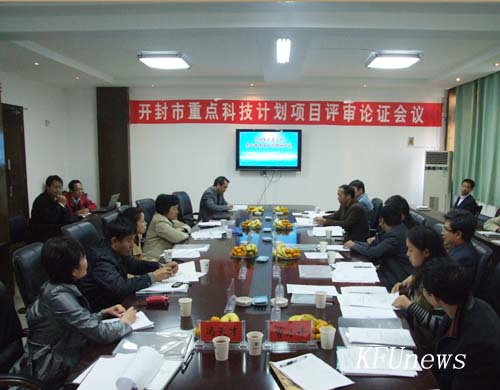 赵辉副校长代表学校对各位专家、领导的到来表示热烈欢迎;市科技局副局长程燕就我校绿色高分子材料市级重点实验室,以及开封市重点科技攻关计划项目向与会专家作了简单介绍;我校功能材料研究中心副主任陈永向专家组作了详细汇报。汇报结束后,专家组经实地考察、审阅申报材料、质疑讨论,认为该项目符合国家科技和产业发展方向,对促进开封市经济发展具有积极作用,建议予以立项,在研究经费方面给予重点支持。
