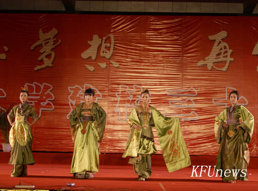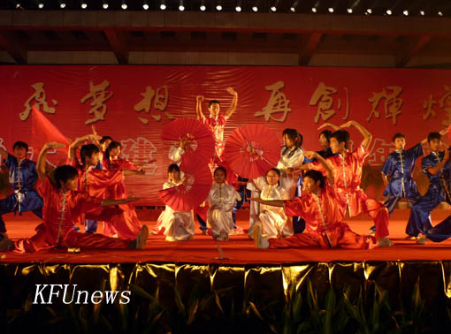 晚会围绕30年校庆这一主题徐徐展开三个篇章:“时代召唤”,“缤纷校园”和“展望未来”。热情奔放的现代舞《欢腾》拉开了汇演的序幕。歌曲《母亲》牵动了在场校友对开大母校的眷恋之情;川剧《变脸—喷火》、《中国龙女子打击乐》、我校工美学院服装专业学生的大宋服装秀表演为大家献上了一场视听盛宴,其中由校武术协会表演的武术节目更是将晚会推向了高潮。表演现场不断响起阵阵掌声、欢呼声。晚会在我校教师奉献的配乐歌舞、诗朗诵《辉煌走过三十年》中圆满结束。