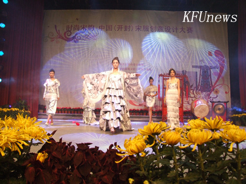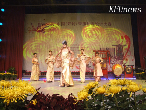 本次设计大赛由中共开封市委宣传部、中国收藏文化(开封)论坛、市文广新局联合举办。我校师生宋服创意设计作品喜获大奖。共获得银奖2个系列、铜奖2个系列和优秀奖10个系列,本次大赛金奖空缺,张富云、张静设计的《菊风宋雅》系列和苗靖设计的《清香韵》系列获银奖,伊红莉设计的《宋韵霓裳》系列和李净净设计的《福宋》系列获铜奖,李彩霞设计的《汴湖春韵》系列等10个系列获优秀奖。