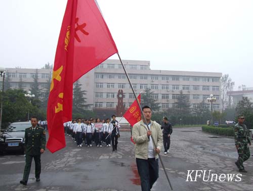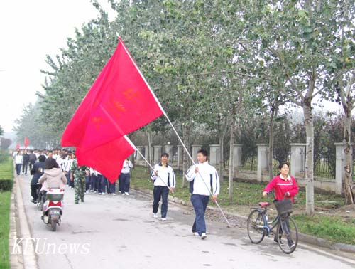 本次军训拉练途经大梁路、黄河路、东京大道,拉练队伍在东京大道校区操场集结,进行歌咏比赛,比赛结束后,再原路返回晋安路校区东操场,全程近12公里。为保证本次拉练顺利圆满进行,学校安排了医疗小分队和收容车随队前行,以便对一些途中身体不适的学员进行及时的护理。参训老师们也身体力行,随从队伍步行全程,校学生工作部部长陈岩一直紧跟队伍,走在前列。