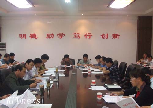 本站讯 为做好2010年各项迎新准备工作,确保迎新工作圆满顺利完成,9月7日上午,我校在行政楼二楼会议室召开迎新工作专题会,研究部署2010年迎新工作。校长拜五四、党委副书记、副校长储健新、副校长万是明,以及相关职能部门和各院(部)负责人参加了会议。会议由万是明主持。