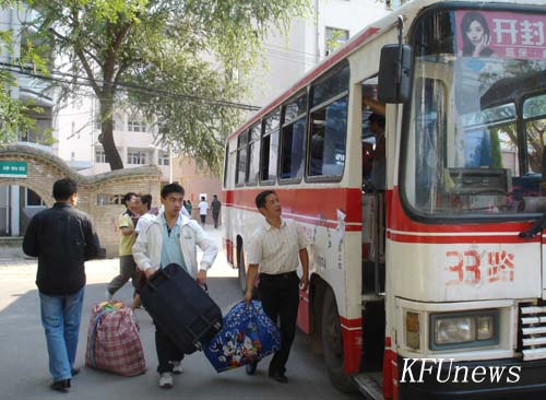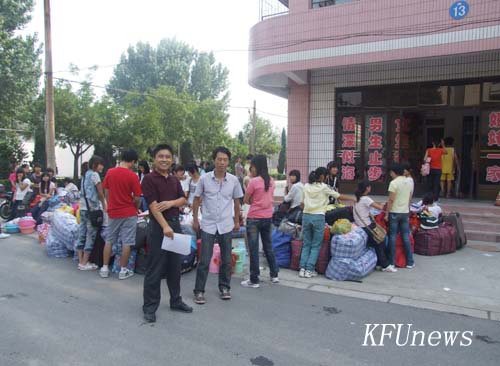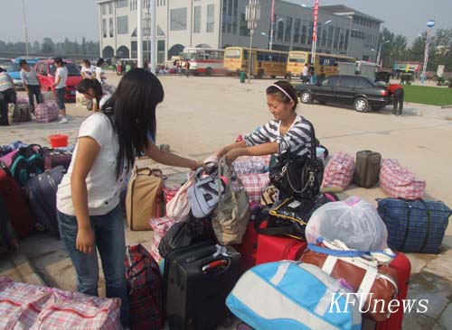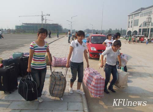 本站讯 8月28日一大早,搬迁北校区的财经学院、人文学院两学院的学生在老师的组织下正有序地往北校区搬迁学习、生活用品。