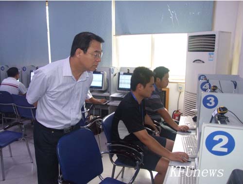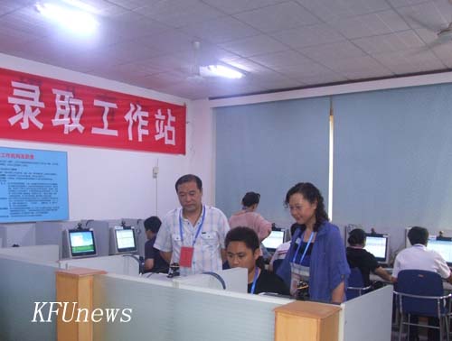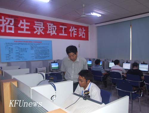 本站讯 8月13日,我校河南省专科一批录取工作开始,校领导莫华林、拜五四 、储建新到录取现场慰问参加录取工作人员,并强调了工作纪律,要求大家要严格贯彻高考录取“公平、公正、公开”原则、实施高考招生“阳光工程”,要保质保量保时完成录取工作。