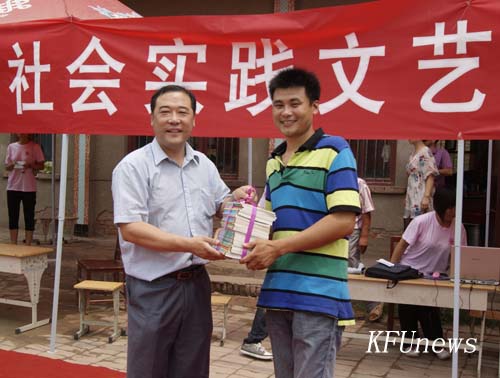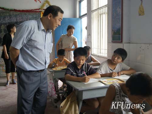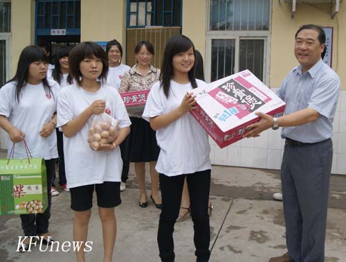 本站讯 7月8日上午,校党委副书记、副校长储建新带领校党委宣传部、学工部、团委、财政经济学院、工艺美术学院等部门负责人到魏都路小学和开封县杜良乡黄庄小学慰问我校参加社会实践的学生,给他们带去了鸡蛋、方便面等慰问品,并勉励他们要克服困难、积极实践、服务群众。在魏都路小学慰问时,储书记代表学校为“bat365在线官方网站社会实践基地”揭牌。