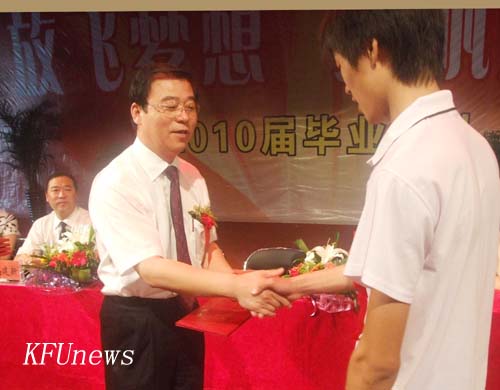校长拜五四为2010届毕业生代表颁发毕业证书,并深情致辞。拜校长指出,同学们在校学习期间,正是学校处于改革与发展的关键时期。学校积极把握高职教育发展的历史机遇,坚持走跨越式、可持续发展之路,靠示范性院校建设提升内涵,靠改革创新凝炼特色,靠新校区建设再增实力,使学校的办学水平不断提高,社会影响力进一步扩大,职教工攻坚取得突破性进展,在全省高校数十项教学、科研、人才培养的评估评审中,我校均居于前列。08年被省教育厅确定为全省十一所重点建设的省级示范性高等职业院校之一,09年被省政府表彰为河南省职业教育攻坚先进学校,今年我校又喜迎建校三十周年华诞。所有这些成绩的取得,无不凝结着全校师生员工的热情和汗水,艰辛与努力。同学们关心和支持学校的建设和发展,以主人翁的姿态,积极参与教学和社会实践,为学校各项事业健康快速发展做出了自己的贡献。