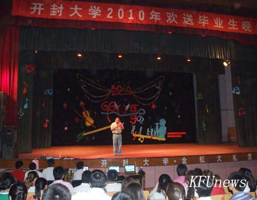 本站讯 六月的流苏来临,临别的钟声响起。6月11日晚,由团委主办、校学生会承办的2010年毕业生晚会在金松大礼堂隆重上演。校党委副书记、副校长储建新,党委组织部部长秦雪峰、学生工作部部长陈岩、团委书记樊玉霞及各院(部)团总支书记们出席并观看晚会。