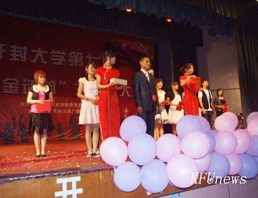 本站讯 6月2日晚,由校党委宣传部主办,校广播站承办的bat365在线官方网站第七届挑战“金话筒”主持人大赛在金松大礼堂隆重举行。校党委宣传部、学工部、校工会、团委等部门的负责人及开封电台节目主持人苏晨等出席大赛并担任评委。