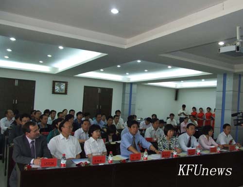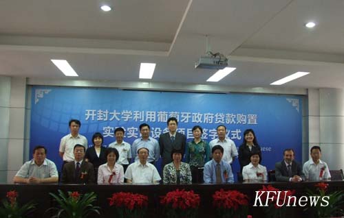 参加签字仪式的省市领导有:开封市人民政府正市长级干部朱丽萍,省财政厅外资处处长张惠,省财政厅外资处处长(调研员)李柏强,省发改委外资处处长李桓,省教育厅高教处副处长岳德胜,市财政局副局长孙国强,市发改委副主任方守成;葡方代表有:葡萄牙DEIBAR公司代表VITOR先生,北京金洲公司代表丁巍先生;采购代理方代表中国机械设备进出口公司耿学勤女士;校方代表党委书记莫华林,校长拜五四及全体校党委委员、校领导;我校相关院(部)、行政部门负责人参加了签字仪式。签字仪式由副校长何世玲主持。