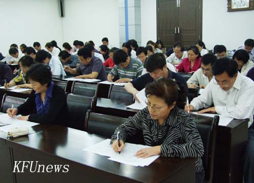 全体校级领导、中层干部在法纪条规知识考试的过程中,态度端正、答题细心,考场秩序井然。