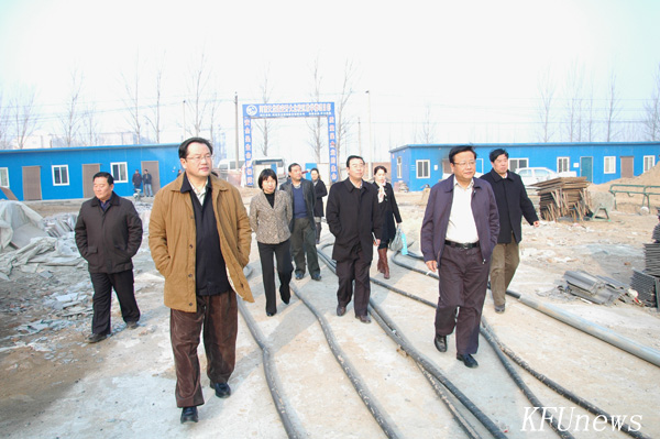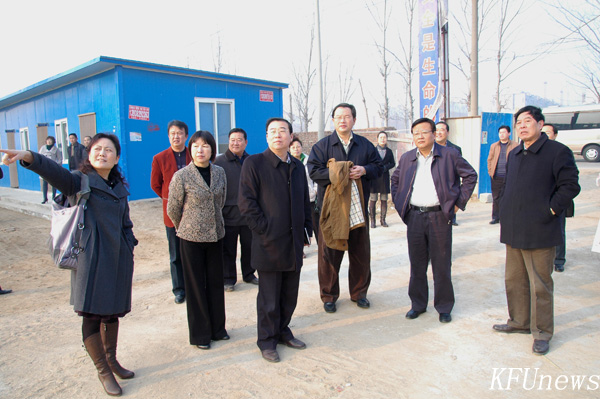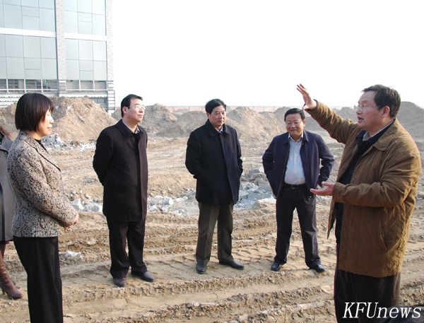 本站讯 2010年2月23日上午,市委书记刘长春、市长周以忠、市长级干部朱丽萍等领导到我校北校区视察建设工作。他们在我校校领导莫华林、拜五四、储建新、范金梅、何世玲等的陪同下,参观视察了北校区的建筑工地,并对我校北校区发展建设的情况进行询问。