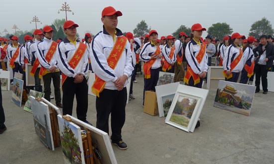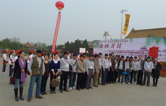 本站讯4月10日上午,“油画开封---河南省百名油画家走进开封”活动在龙亭公园举行隆重的开笔仪式。魏跃进、戚培智、孙平老师作为特邀画家与学院部分教师及校团委组织的工美学院志愿者服务队参加了活动。