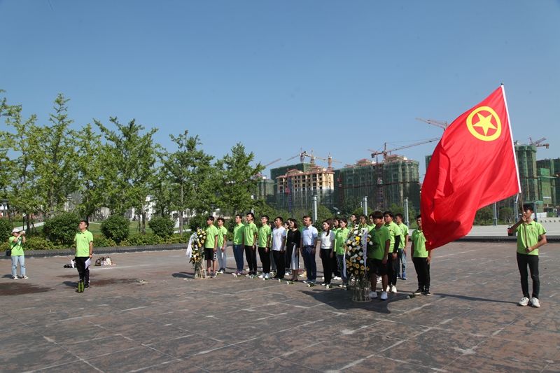 7月7日,bat365在线官方网站暑期“三下乡”助力“第一团支书”信阳息县社会实践团队在信阳息县刘邓大军渡淮纪念广场开展了“缅怀革命先烈,重温入党誓词”主题党日教育活动活动。校党委副书记储建新、共青团河南息县委员会书记顾燕、校团委副书记吴文静、校团委干事吴旭东、人文学院辅导员胡超老师和暑期“三下乡”社会实践团队全体队员参加了此次主题党日教育活动,活动由创新创业学院老师王龙主持。