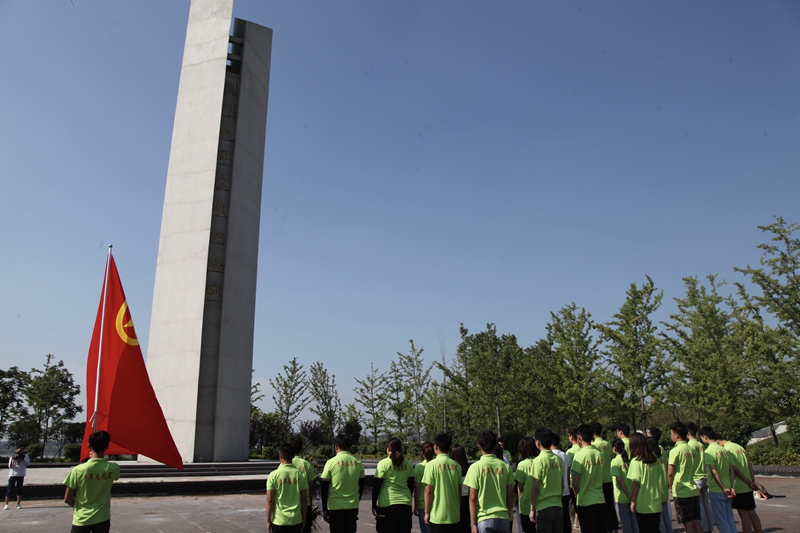 上午9点,参与活动的一行人来到庄严肃穆的刘邓大军渡淮纪念广场,面对着高大的纪念碑,大家肃然起敬。活动伴随着庄严的国歌开始,校党委书记储建新和共青团息县委员会书记顾燕向纪念碑敬献了花篮,全体成员向革命烈士默哀1分钟,学生党员代表马澳归带领全体党员重温了入党誓词。随后,全体成员瞻仰了刘邓大军纪念碑和烈士陵园,并将手中的鲜花轻轻地放在纪念碑前,以表示对英雄的尊敬与敬仰,活动在参观刘邓大军纪念馆中画上一个圆满的句号。