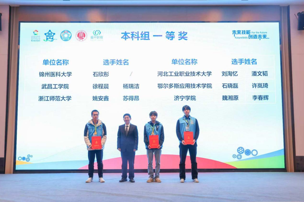 孙利娟在赛事点评中指出,赛项设计严谨、聚焦实战能力,选手表现卓越、展现梯队特色,团队协作高效、彰显应变智慧,裁判公正执裁、护航赛事品质,并对本次大赛进行展望、提出建议。孙利娟宣布获奖名单。bat365在线官方网站的四支团队均获高职组一等奖,同时获“最佳组织奖”和“突出贡献奖”。随后,与会领导嘉宾为大赛依次颁发一二三等奖及优秀组织奖、最佳组织奖、突出贡献奖。