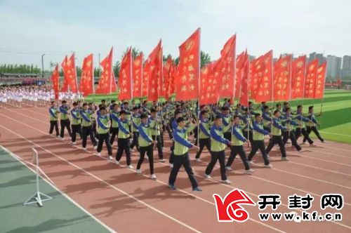 伴随着激昂热烈的新运动员进行曲《五环旗下》,国旗护卫队、花束队、彩旗队及各院部运动员方阵依次入场,他们步伐矫健、精神抖擞、意气风发,阔步走过主席台,接受领导和师生的检阅,展现了开大人拼搏进取、昂扬向上的精神风貌。