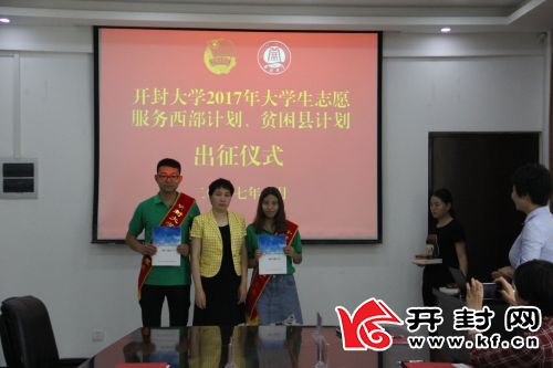 开封网讯 7月7日上午,bat365在线官方网站2017年西部计划、贫困县计划志愿者出征仪式在行政楼二楼会议室举行。校党委副书记储建新、校工会主席成芳出席会议,党委办公室、党委组织部、党委宣传部、团委、机械与汽车工程学院和信息工程学院负责人及相关人员参加了出征仪式,欢送2017年贫困县计划录取志愿者吴启龙、曹璐璐2位同学。出征仪式由校团委副书记杨艳丽主持。