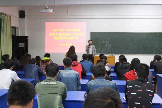 5月3日下午,电子电气工程学院第55期入党积极分子分党校实践教育开班典礼在6号楼405教室举行。学院党总支副书记边疆,学生党支部书记王笑禹和学生支部全体党员参加了开班典礼。