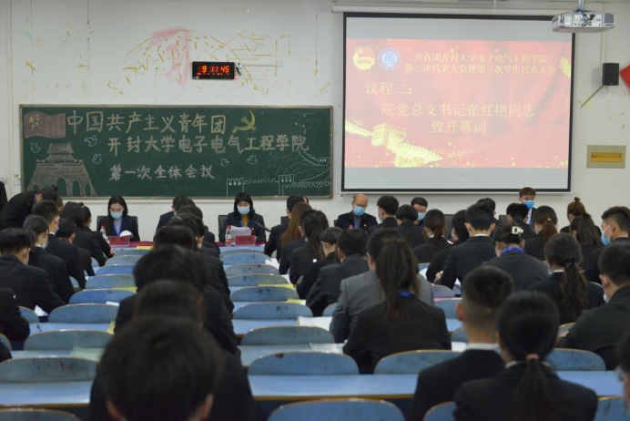 恰逢中国共产党成立100周年、党的十九届六中全会召开之际,电子电气工程学院于11月13日至14日,在15号教学楼121教室召开第三届代表大会暨第三届学生代表大会。校党委副书记储建新、院党总支书记张红艳、院长杜诗超、副书记杨辉、副院长边疆、团总支负责人刘畅及80名会议代表出席本次会议。