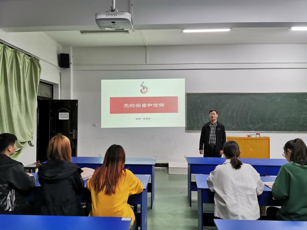 为让发展对象深入理解党的宗旨和信仰,端正入党动机,规范自身行为,电子电气工程学院分党校于2019年10月29日晚上,邀请学校国有资产处处长王玉杰教授为学院第11期发展对象培训班的学员在6号楼405教室上了一堂“党的宗旨和信仰”主题党课。