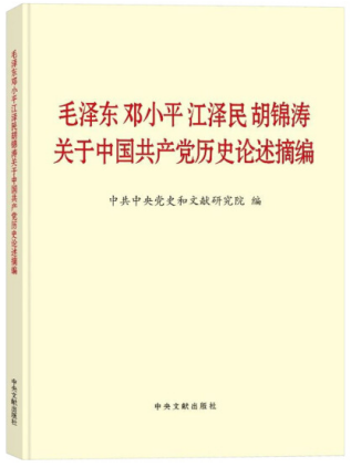 第二本是《毛泽东、邓小平、江泽民、胡锦涛关于中国共产党历史论述摘编》。该书分别摘录了毛泽东同志、邓小平同志、江泽民同志、胡锦涛同志在领导中国革命、建设、改革过程中,围绕中国共产党历史发表的讲话、报告、谈话、批示和书信等重要文献,共计141段论述、9.8万字。