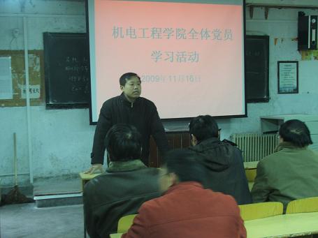本站讯11月16日下午4点半,机电工程学院党总支组织全院党员师生共同进行了第三次党员学习活动:在1号楼216观看《建国大业》,党总支书记李继方主持了此次学习活动。