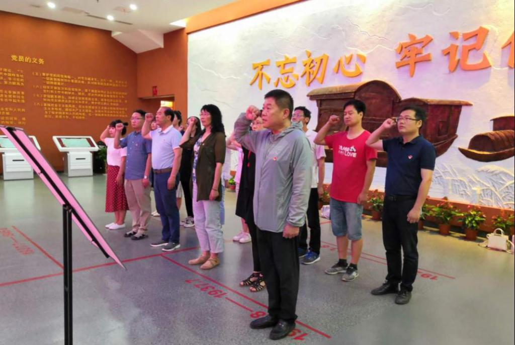 最后,全体党员来到宣誓厅,聆听了《国际歌》,共唱《国歌》并在杨书记的带领下重温了入党誓词,再次向党旗庄严宣誓,不断增强党员的责任、使命和党员意识,进一步明确党员以及党员干部的使命与担当。结束后,全体党员在《共产党员承诺书》上签字。