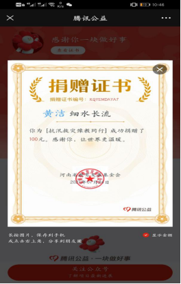 也有部分没能前往抗洪救灾一线的王梦鸽、黄洁等86位同学,纷纷响应抗洪救灾的号召,自发的通过不同的渠道进行捐款捐物,截止7月25日共捐款2535.2元。虽然捐款数额不等,但都体现了同学们对抗洪救灾的一份支持。