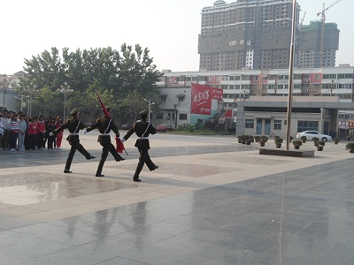 升国旗仪式是对广大师生进行爱国主义教育的必要形式,是高校思想政治教育工作的重要内容之一,我院每学期都组织参加一次隆重的升国旗仪式,使更多的师生都可以参加到升旗仪式中来,接受爱国主义教育。全体师生踊跃参与,表现出了良好的精神面貌。