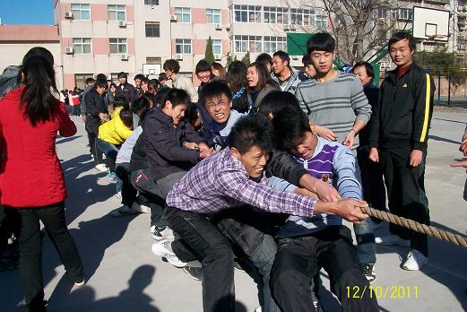 大赛以班级为单位,各班选出12名男生与3名女生组成一队参加比赛,全院共有15个班级参加比赛。比赛共分三个阶段进行。第一轮为班级小组赛,获胜班级参加第二轮比赛,最后一轮为前三甲决赛。比赛顺序都由抽签方式进行。比赛过程中参赛的同学都竭尽全力“拼杀”,在这短暂的时刻各参赛队员都为了一个共同的目标进入了忘我的境界。欢呼声、呐喊声充满了整个操场。