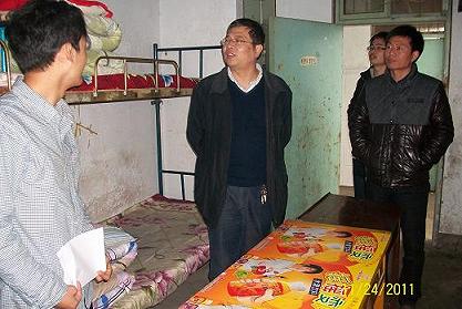 11月24日中午,我院党总支书记马广卿、党总支副书记徐纪珂、副院长朱跃峰、高明远、团总支书记高剑南等领导及辅导员老师来到学生宿舍与学生谈心交流,亲切的慰问着学生的生活,叮嘱每位学生要注意加衣保暖,多运动,时刻注意自己的身体健康,有一个健康的体魄,才能更好地完成自己的在校学习、生活。最后希望同学们在学习、生活中遇到困难,一定要向院里反映,学院会尽力为每位同学解决困难。