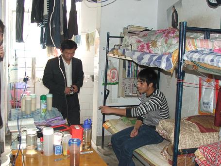 老师们带领着学院学生会的干部、各班班长、团支书分别到学7公寓、学10公寓等宿舍楼,对每个学生寝室逐一排查。检查的重点,其一是宿舍的卫生以及宿舍文化的建设,其二是对宿舍安全问题的排查。经过检查,发现绝大部分的寝室卫生还是保持得比较好,还有一些寝室在宿舍进行了精心的布置。但是也有一些宿舍的室内卫生还有待进一步提高和加强。对于有问题的宿舍,老师们一一做出了要求,并提出整改的措施。