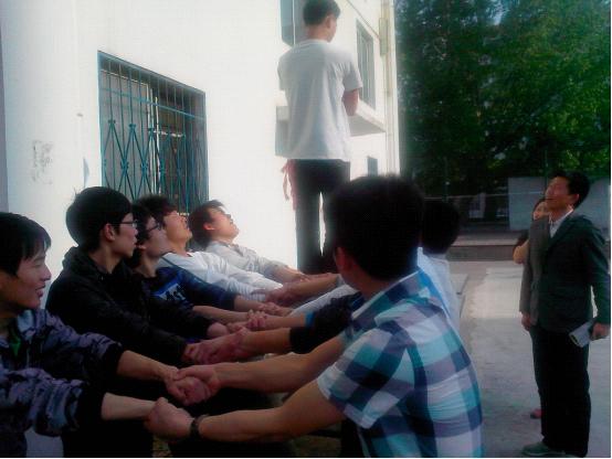 本次活动包括《三人四足》、《信任背摔》两个项目。三人四足活动是以三人组合为小组比赛的比赛形式,是对团队成员的团结协作精神的比拼;信任背摔则考验参与同学的胆量和对他人信任。在信任背摔活动中党总支副徐书记亲自给同学们做示范。